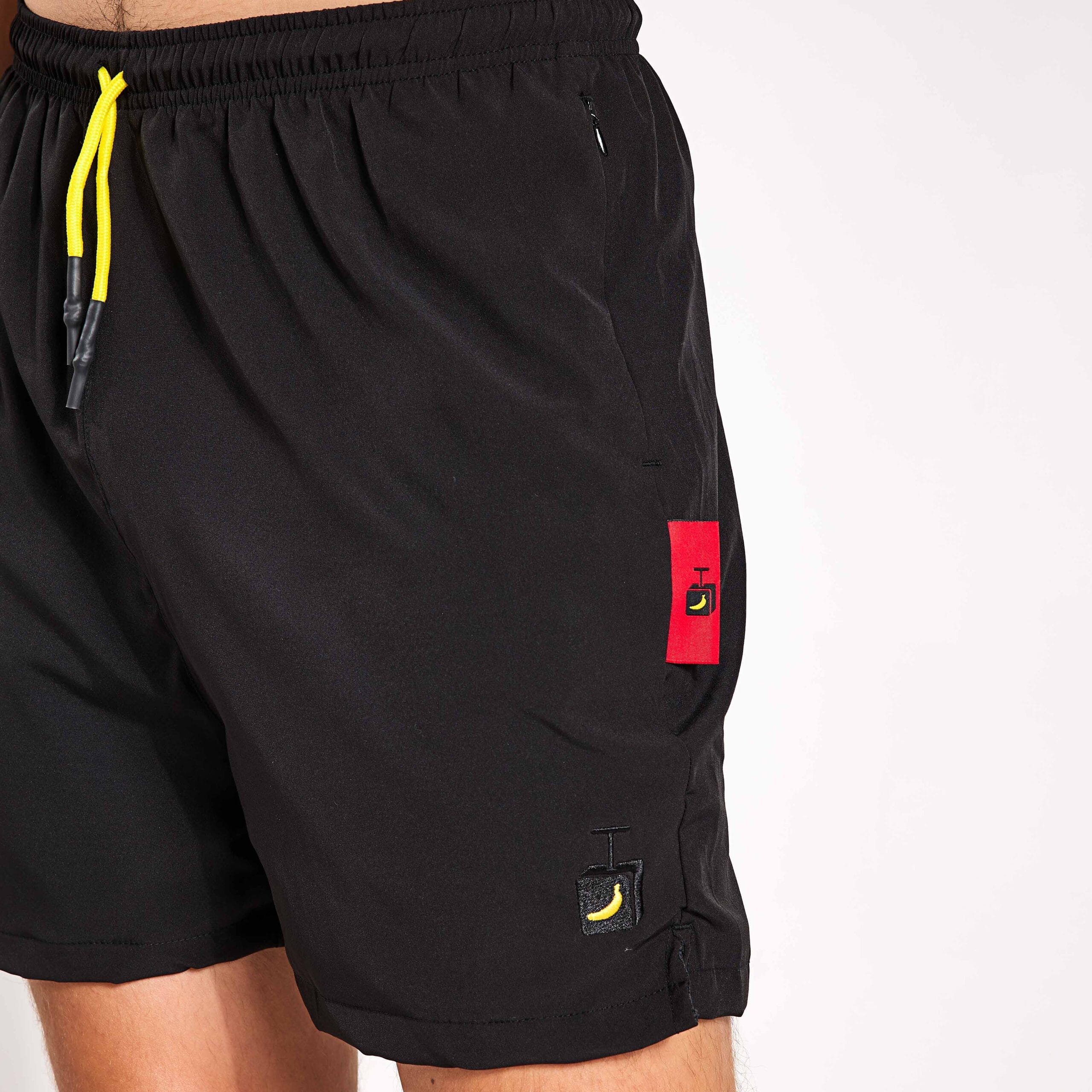 Introducing the ‘Impact Shorts’ — a bold and versatile addition to your wardrobe. Crafted from durable, quick-dry fabric, these shorts feature vibrant colours, perfect for making a statement. The design includes hidden zip pockets to securely store your essentials, ensuring functionality without compromising on style. A unique yellow drawstring adds a pop of contrast, while the embroidered logo on the front adds a touch of brand identity.